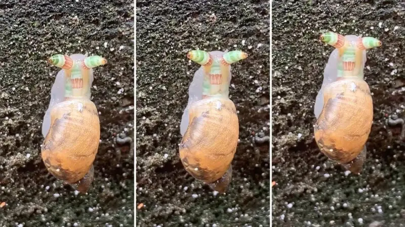 Жуткая улитка с мигающими рогами взбудоражила туристов на Тайване.