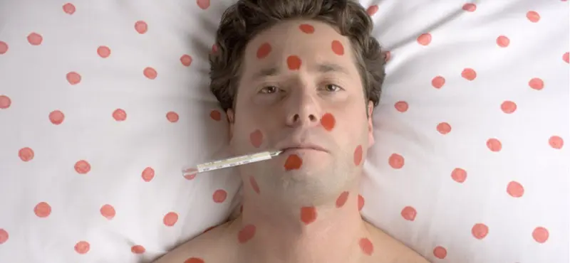 Врач добавил, что сыпь чаще всего напоминает крупные пятна. "...она появляется в первую очередь на лице, на голове", — добавил инфекционист.